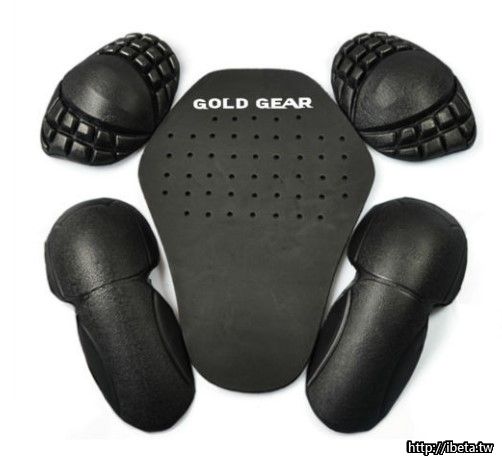[*]五件式護具,保護肘關節(摔車最怕傷到這),肩膀 (倒車第一個接觸地面的部位),脊椎 (不用說也知道這有多重要)。