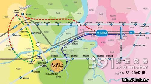 交通 :遠雄大學風呂社區,從台北大學步行5分鐘即到達社區,門前為76米寬的藝術大道,對面為海洋公園。