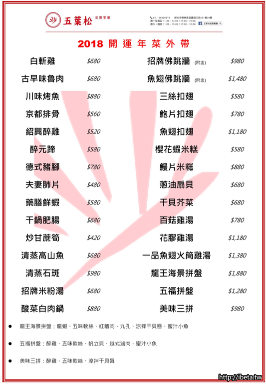 五葉松庭園餐廳 外帶年菜預購 (除夕當日現做)