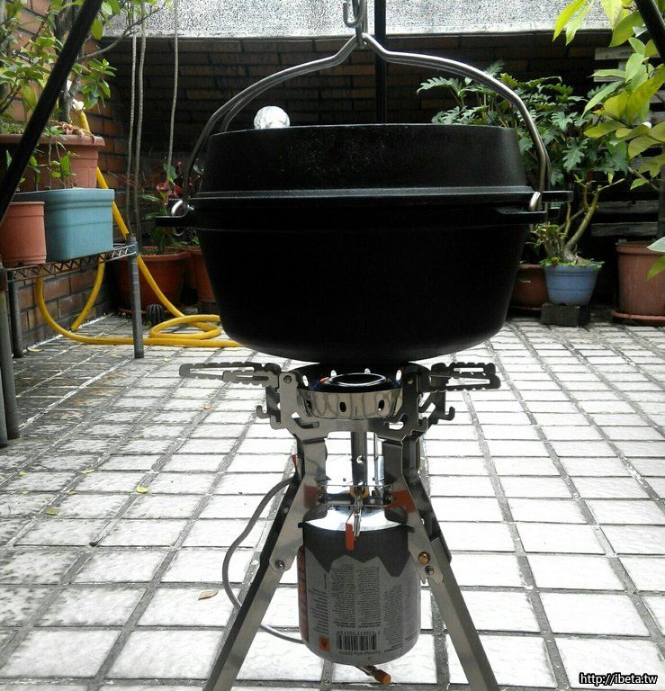 鑄鐵鍋乾燒,將肉塊下鍋煨烙,並將立方體6面翻轉,將逼出很多的豬油。