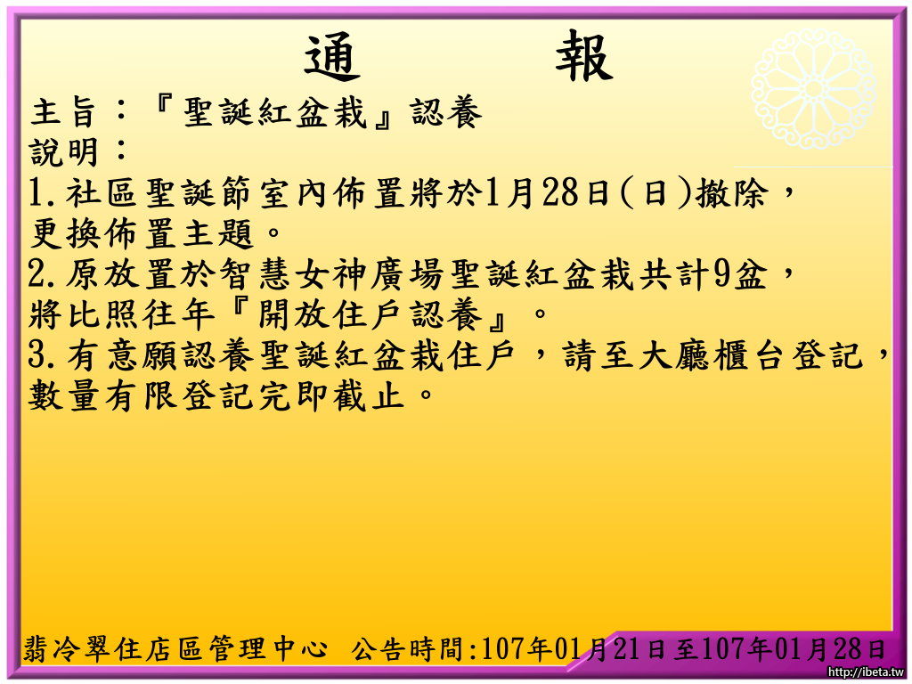 通報-聖誕紅盆栽認養。