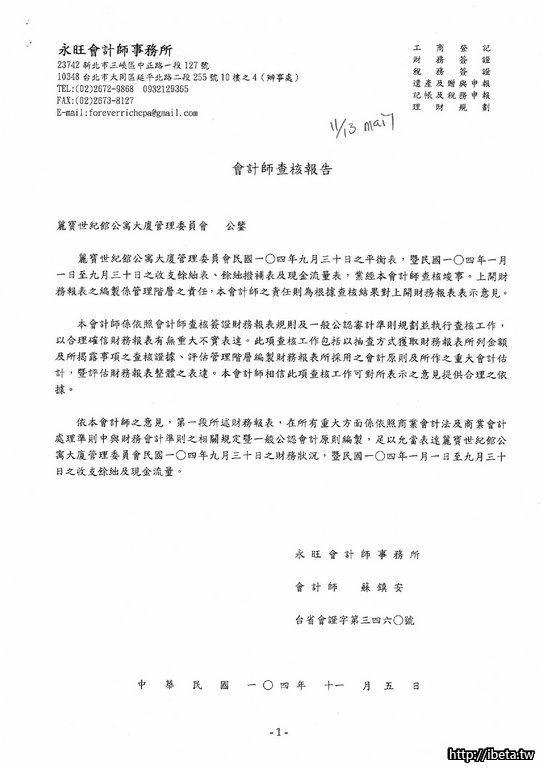 第五屆104年會計師查核報告書