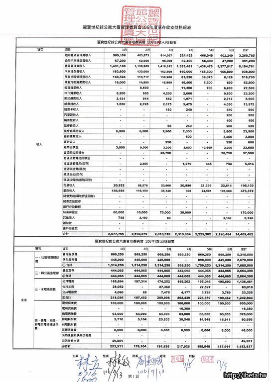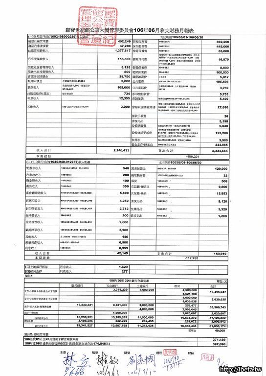 第七屆106-06收支月報表&106年度財務報表