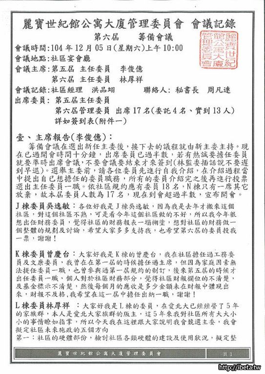 第六屆管委會第一次籌備會議記錄