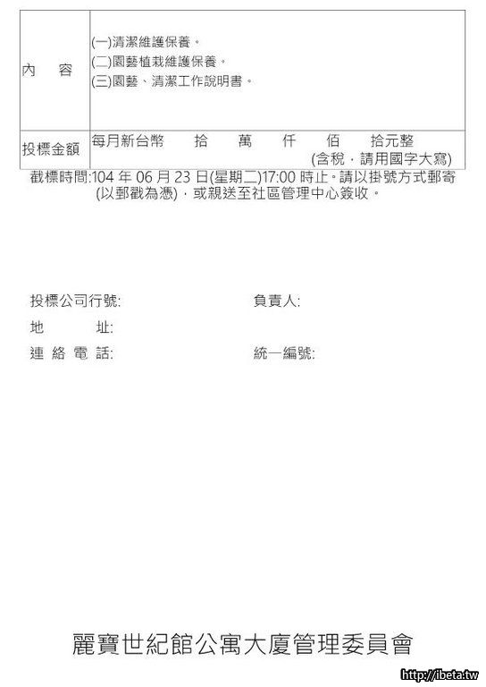 公告104070清潔園藝招標公告