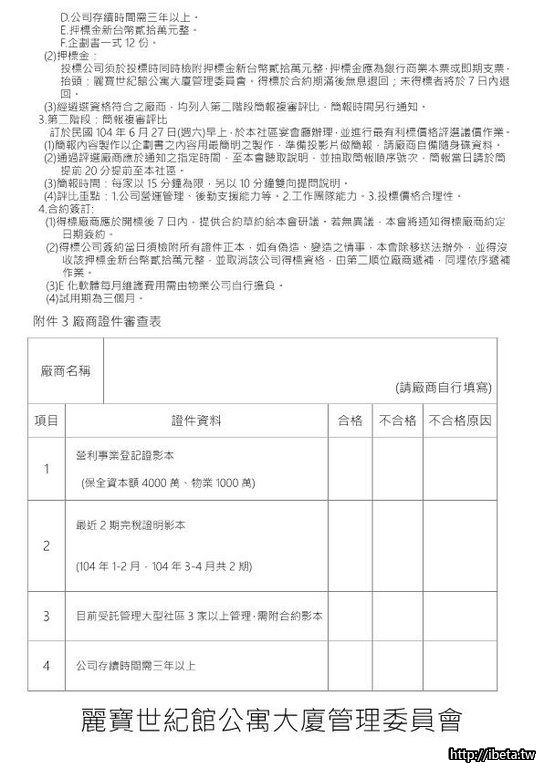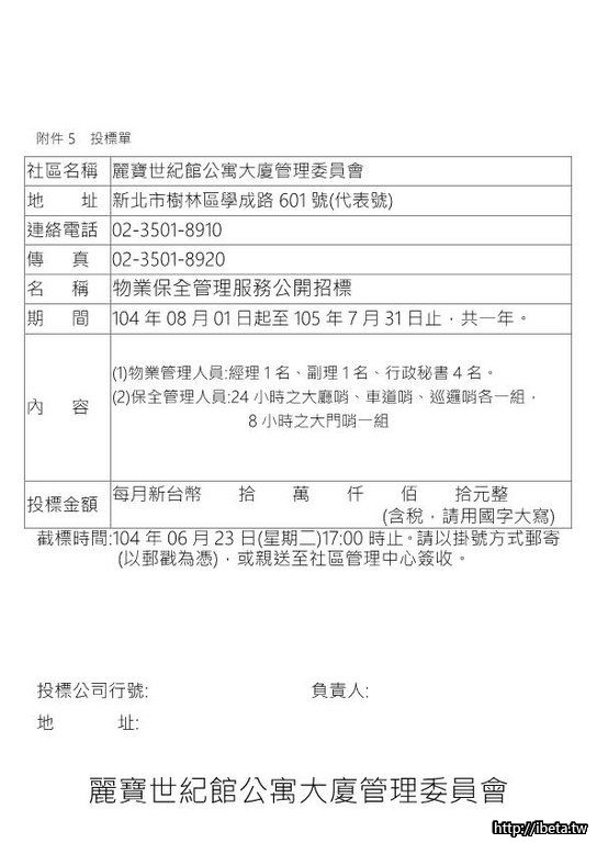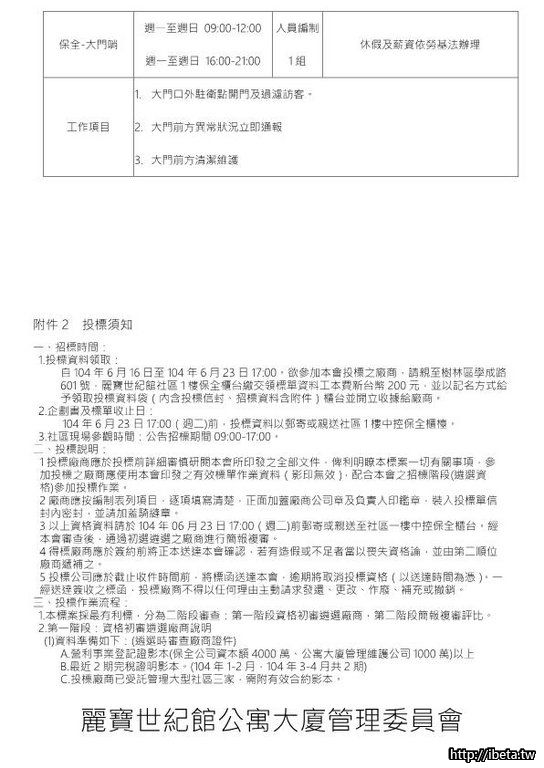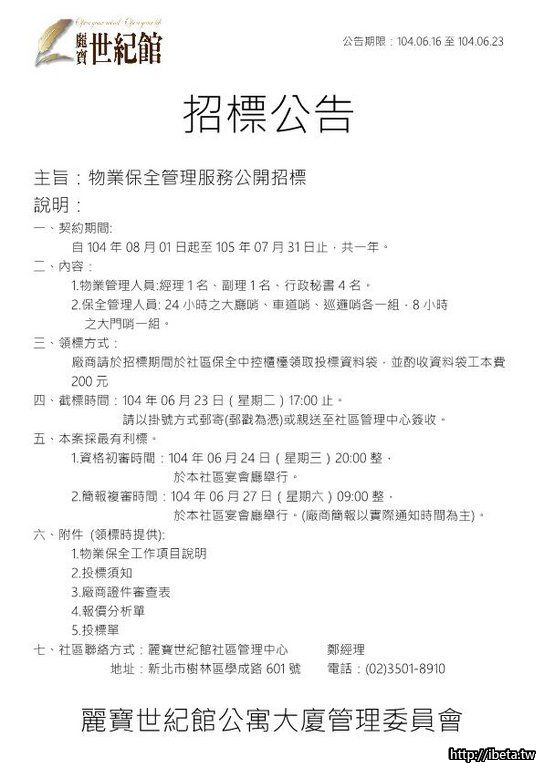 公告104072物業保全委託管理招標公告