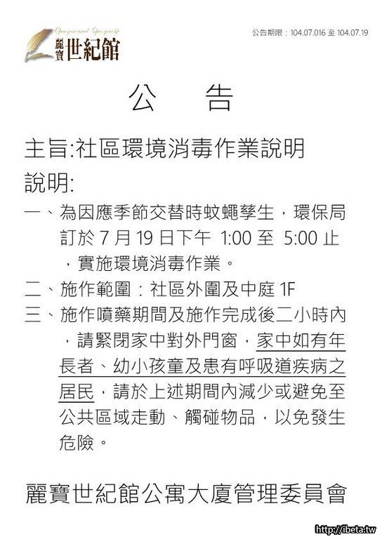 公告104078社區環境消毒作業說明