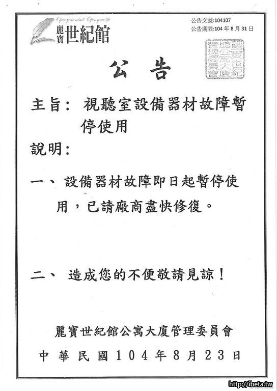 104107視廳視設備器材故障暫停使用