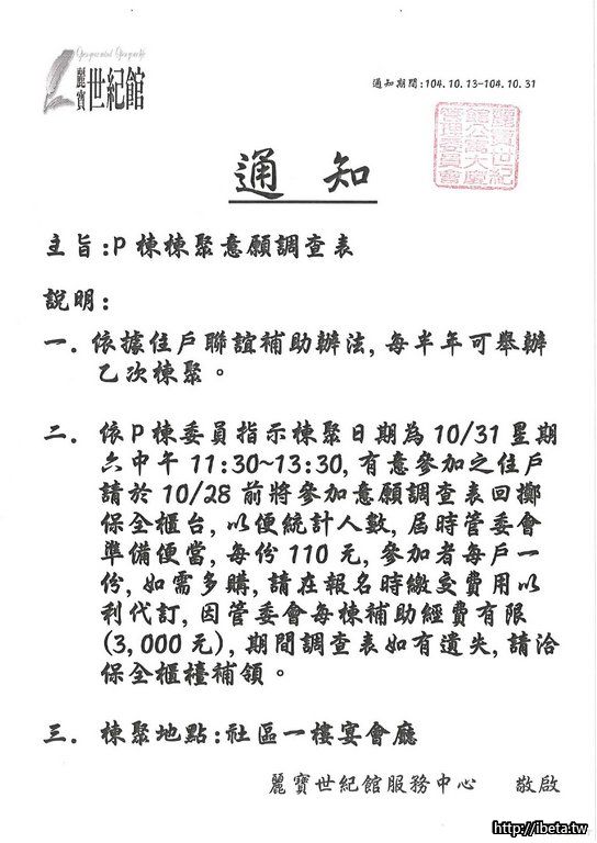 P棟棟聚意愿調查表