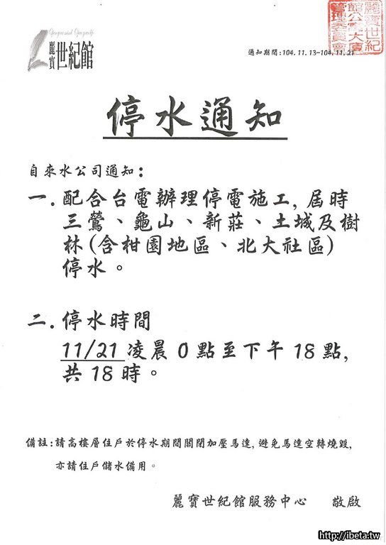 104年11月21日停水通知