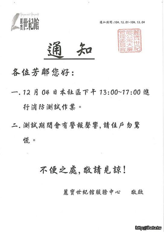 通知 :消防測試作業