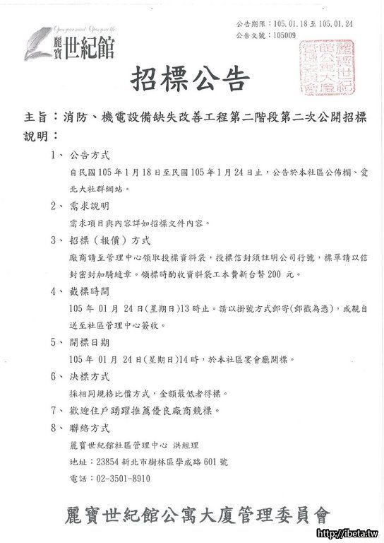 105009 消防機電設備缺失改善工程第二階段第二次公開招標