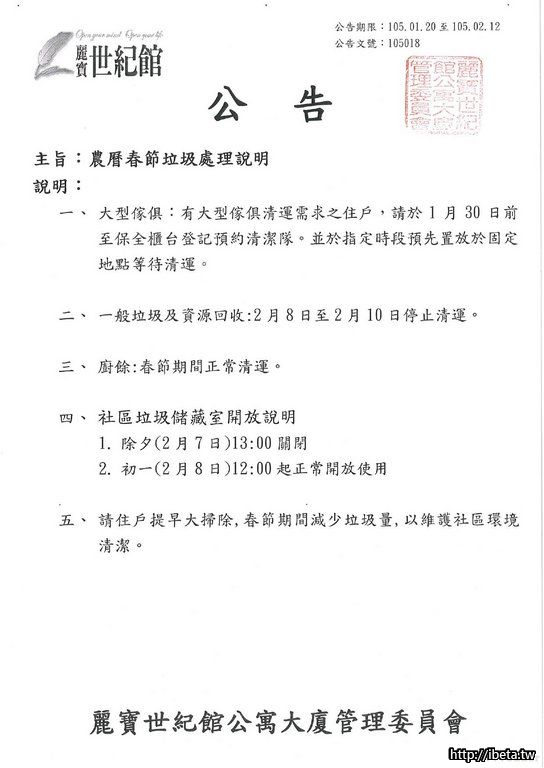 105018 農曆春節垃圾處理說明