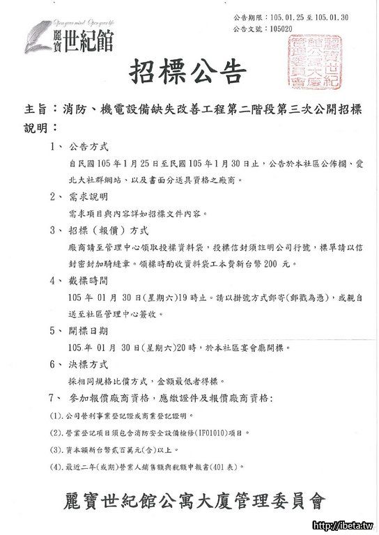 105020 消防、機電設備缺失改善工程第二階段第三次公開招標