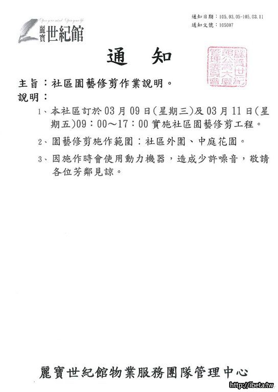 通知 105007 社區園藝修剪作業說明
