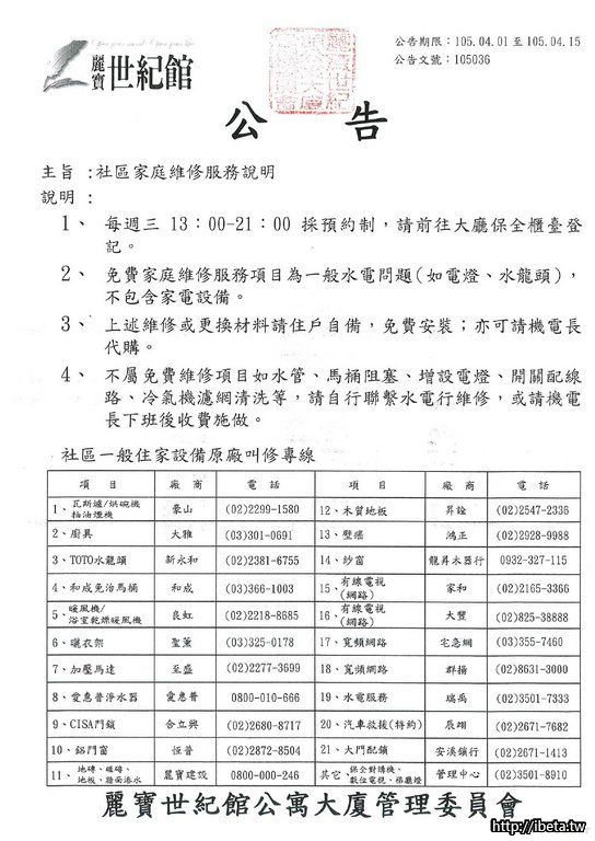105036 社區家庭維修服務說明