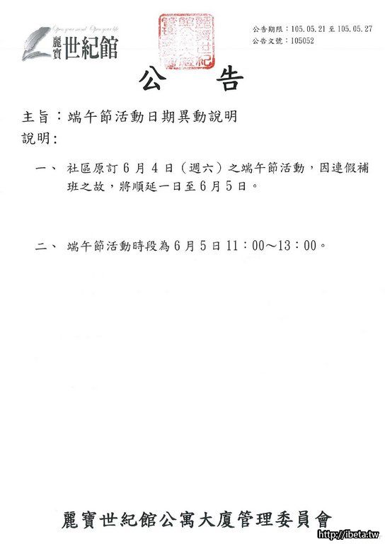 105052 端午節活動日期異動說明