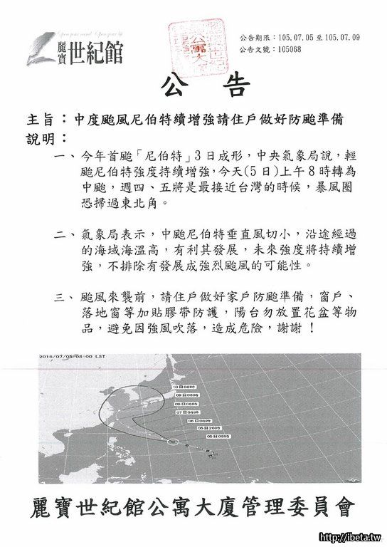 105068 中度颱風尼伯特續增強請住戶做好防颱準備