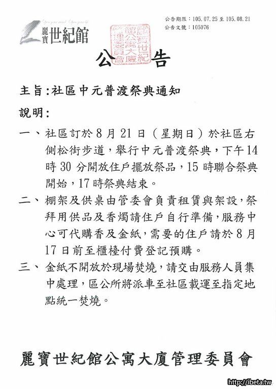105076 社區中元普渡祭典通知