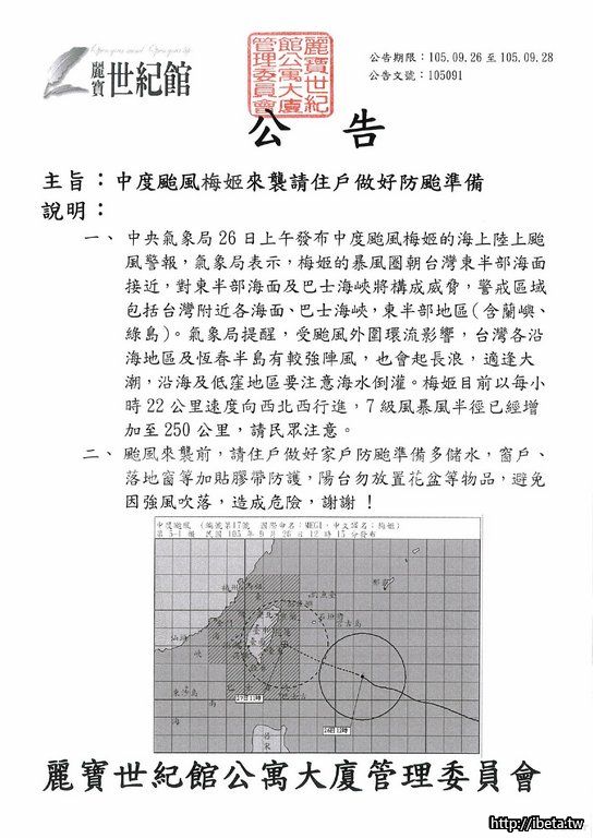 105091 中度颱風梅姬來襲請住戶做好防颱準備