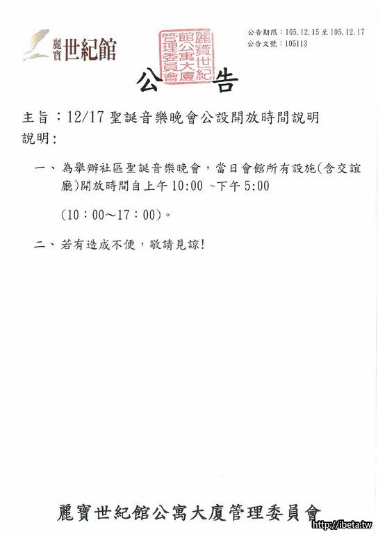 105113 聖誕節音樂晚會公設使用時間