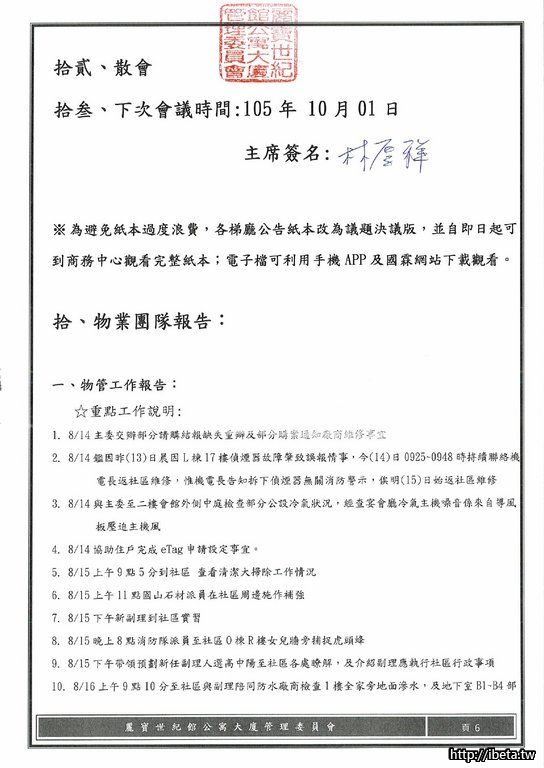 第六屆第九次例會會議紀錄