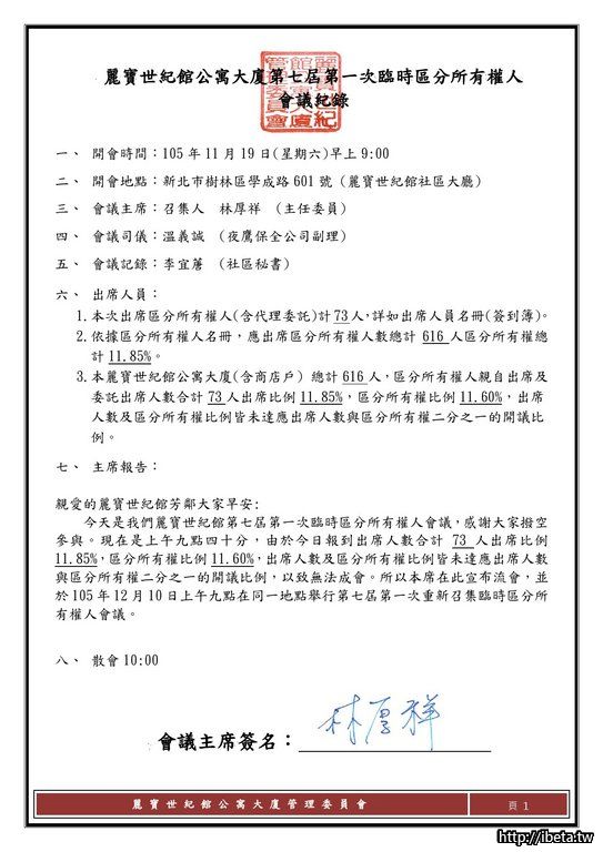 第七屆第一次臨時區分所有權人會議紀錄