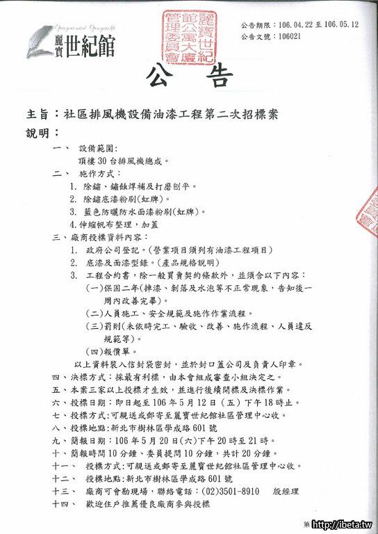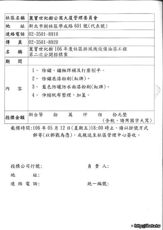 106021 社區排風機設備油漆工程第二次招標案