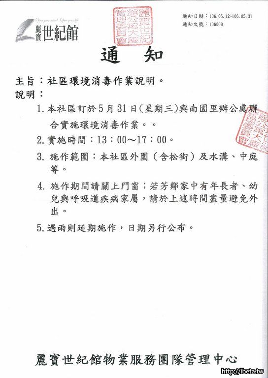 通知 106009 社區環境消毒作業說明