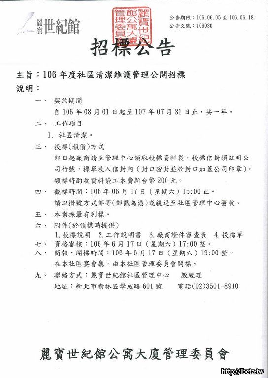 106030 106年度社區清潔維護管理公開招標