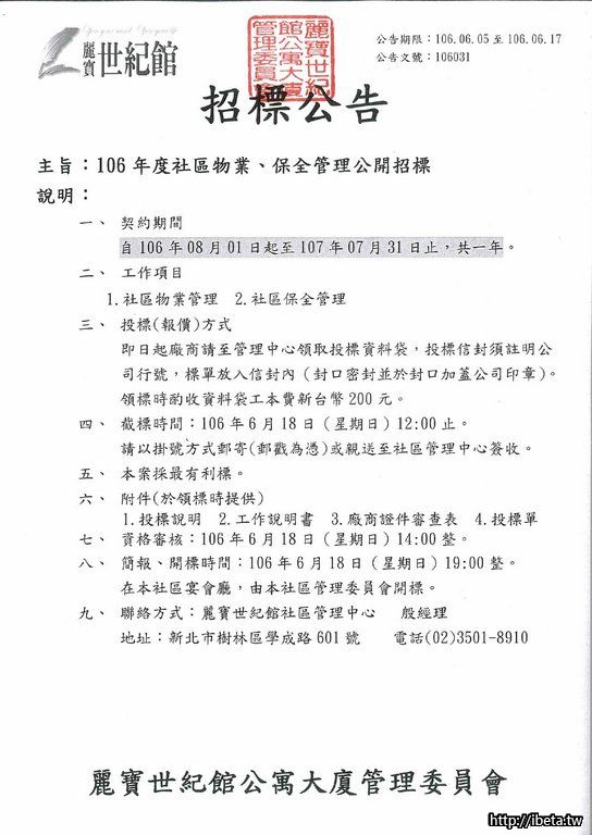 106031 106年度社區物業、保全管理公開招標