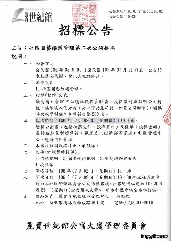 106036 社區園藝維護管理第二次公開招標