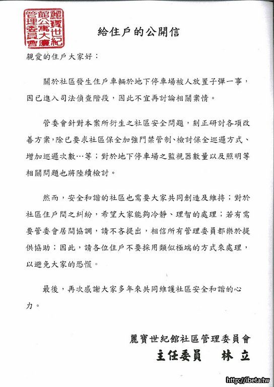 給住戶的公開信