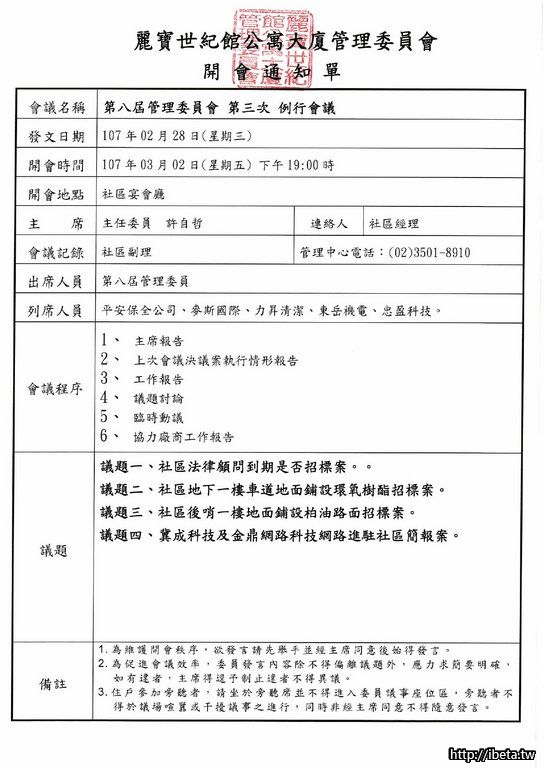 第八屆管理委員會 第三次例行會議
