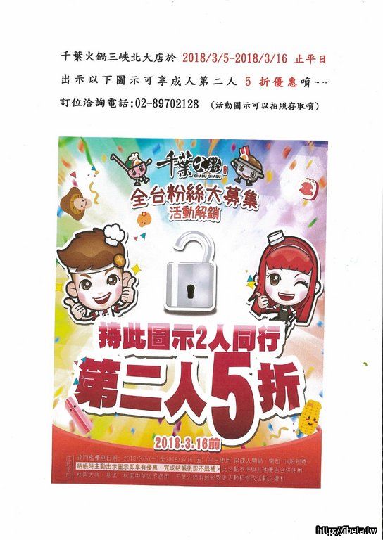 千葉火鍋截此圖示兩人同行第二人五折