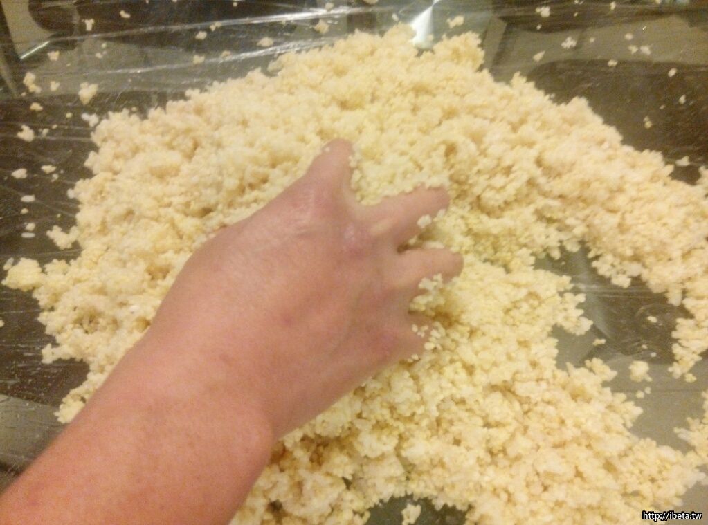 蒸熟、或以一般電鍋煮飯方式煮透煮熟後,攤開冷卻至30度以下。
