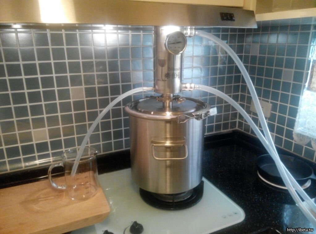 蒸餾白酒是利用乙醇的沸點(78℃)和水的沸點(100℃)不同,分離粹取收集到高濃度酒精的烈酒。要是沒這種專用燒鍋的話,可取家中任何鍋蓋可密合的鍋子均可,鍋蓋再加工接一蒸氣導出管(宜食品級耐熱矽膠管),這管子再浸潤經盆冷水,做冷凝蒸氣成液體之用,此即簡易蒸餾鍋。