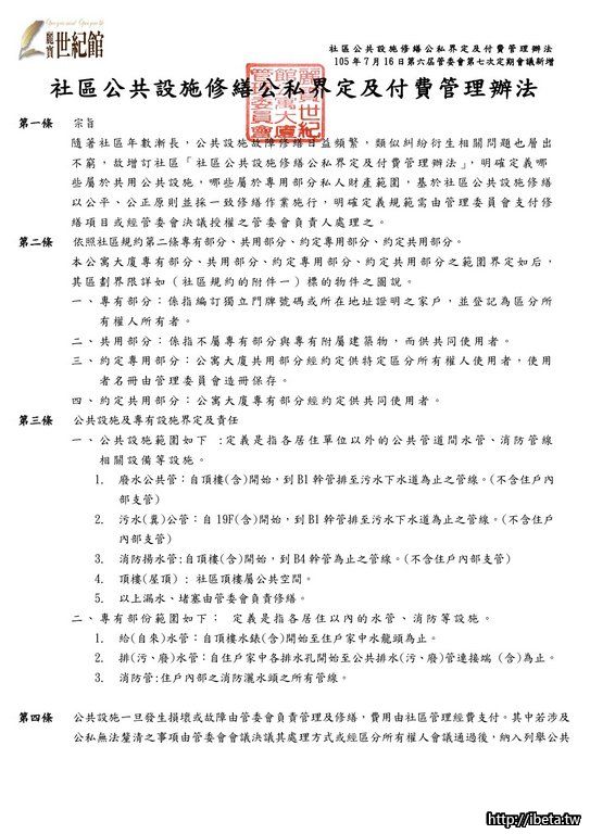 24社區公共設施修繕公私界定及付費管理辦法20161010