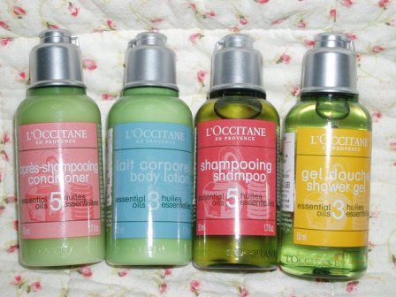 7. L'OCCITANE 歐舒丹 草本修護洗髮乳/草本修護潤髮乳/鬆弛身體乳/提振沐浴膠 50ml*4/旅行組 賣300元