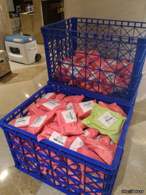 今天4/4 一早走過大廳,還是看大一個大籃子放滿宅配的物件......