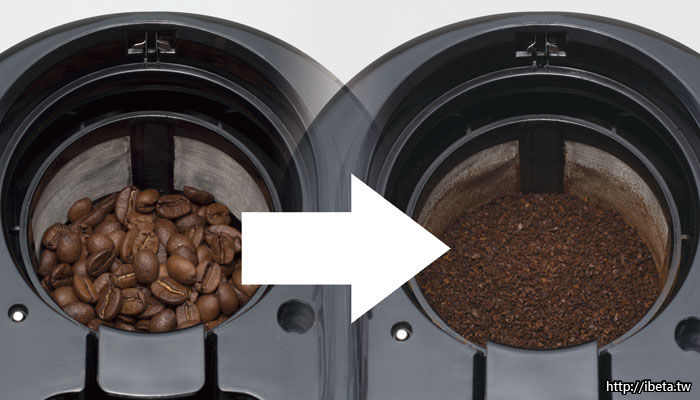 ▲ 內建自動研磨機,從咖啡豆研磨到滴煮沖泡全自動行程