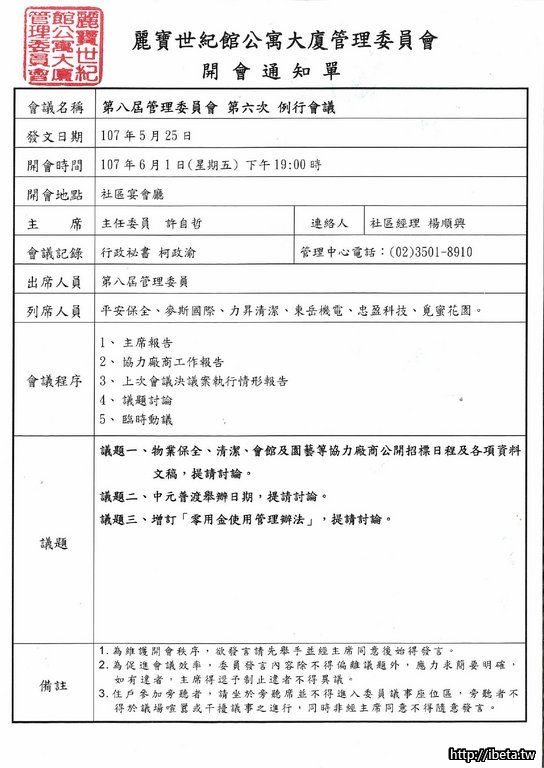 第八屆管理委員會 第六次例行會議