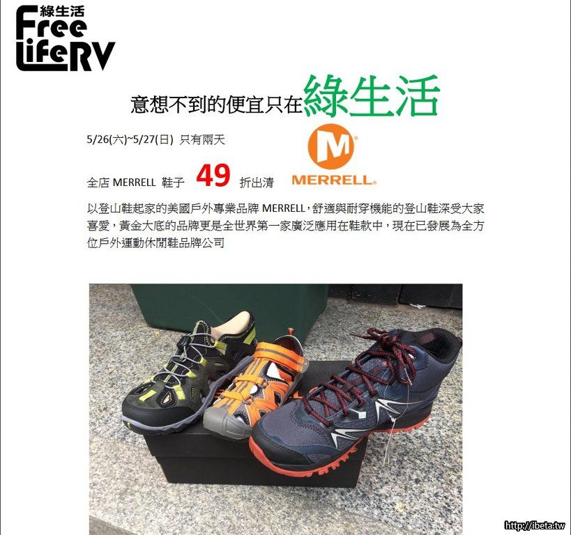 綠生活登山露營用品館 MERRELL鞋類4.9折