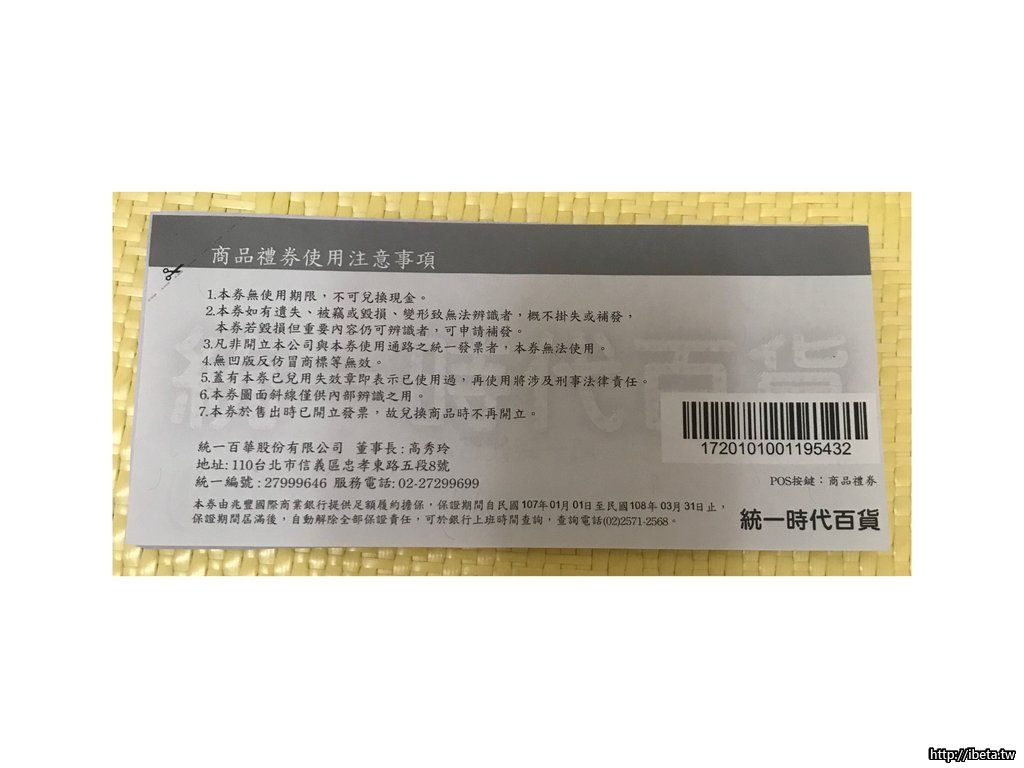 手上有19張統一阪急百貨的商品禮卷,據說是可以找零的唷!