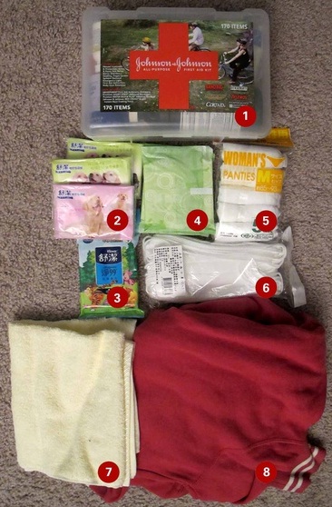 1: 急救箱,裡面請放一些基本的急救藥品和針線包,包含消毒水、醫療膠帶、碘酒、小護士、OK蹦、止痛藥、胃藥、胃散、止瀉藥等等,或者個人常用藥品。