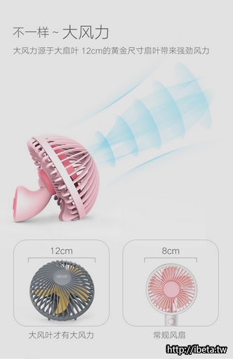1、新款 蘑菇風扇 採用5片羽葉設計 + 12cm大葉片,能密集切割氣流,散熱效果較一般常規風扇佳,帶給您更加舒適的清涼感受。