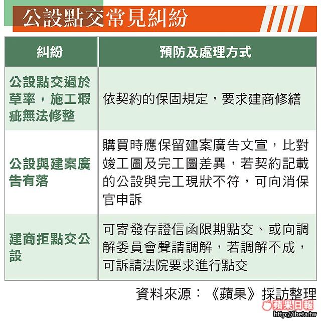 若民眾對於公設點交有任何疑慮,管委會都不應用印,否則社區基金一旦提撥給管委會,點交程序就算完成,屆時就得由法律途徑追討建商或管委會的責任。