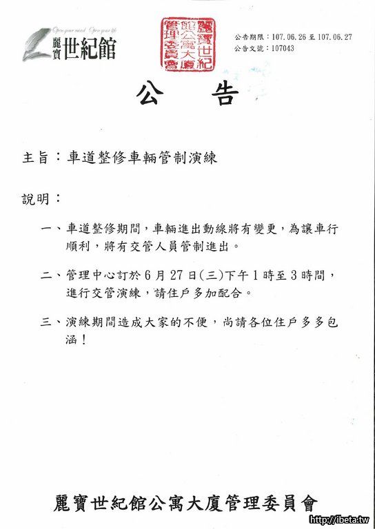 公告 107043 車道整修車輛管制演練