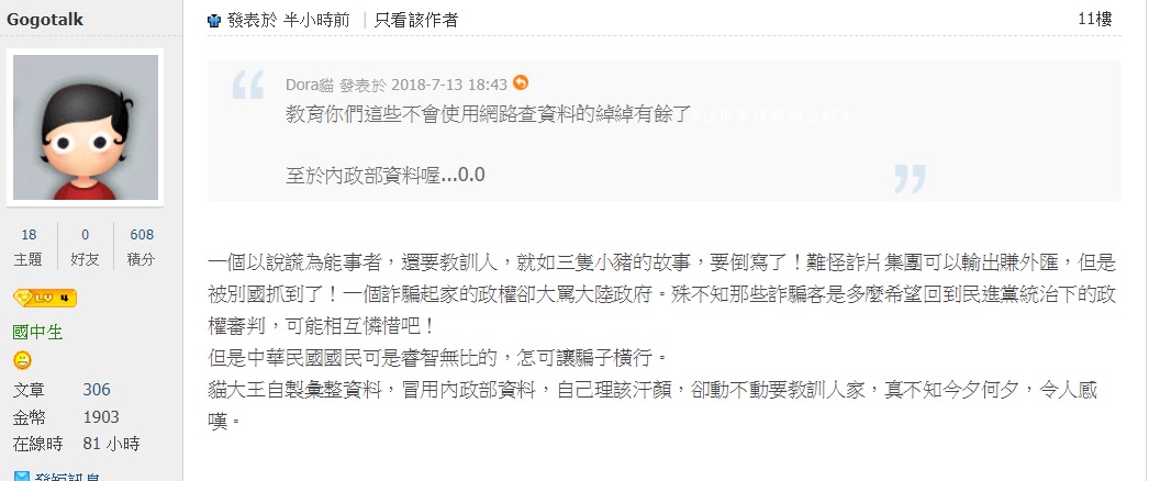 貓大王自製彙整資料,冒用內政部資料,自己理該汗顏,卻動不動要教訓人家,真不知今夕何夕,令人感嘆。