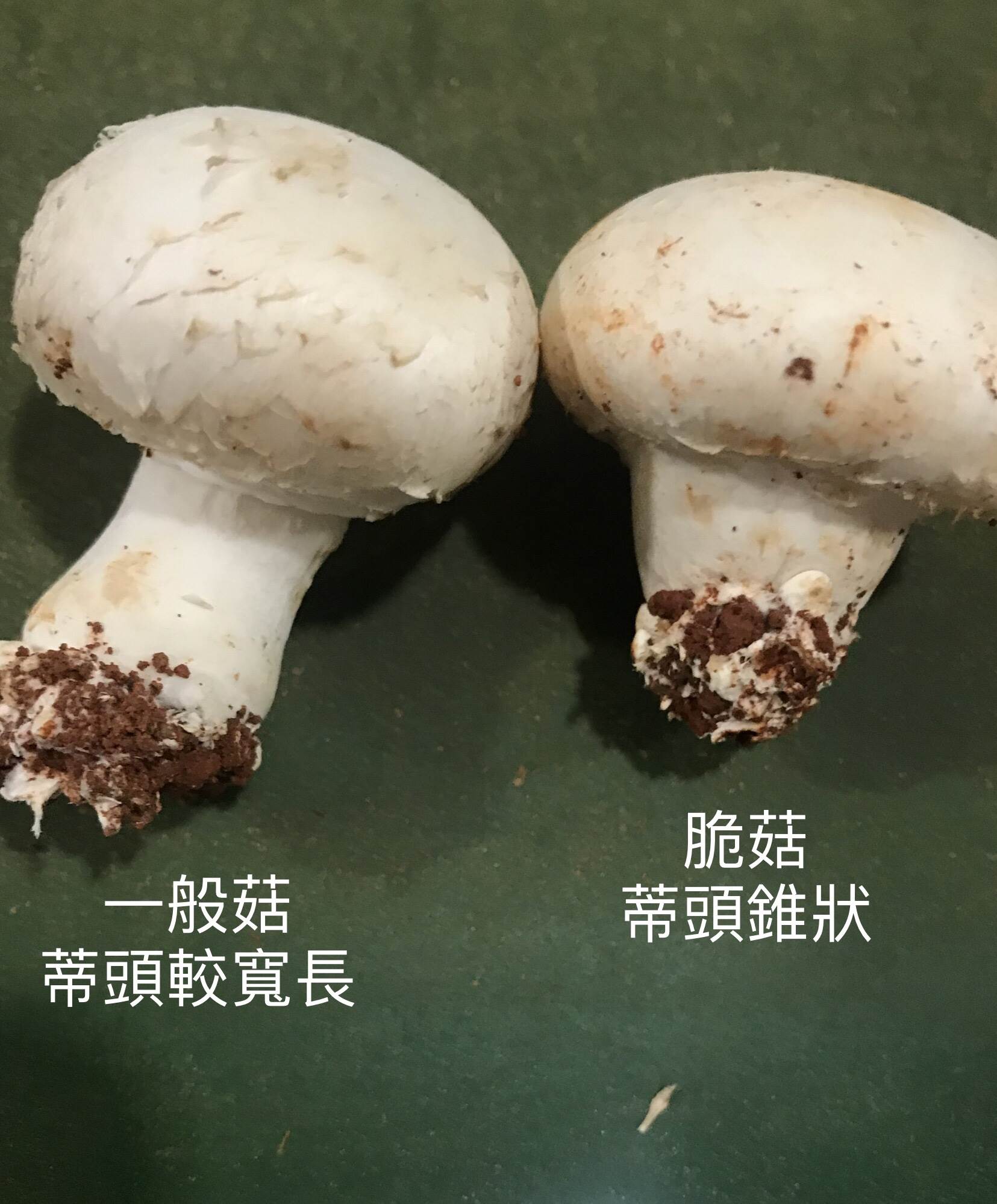 這種洋菇在培養土內待比較久才冒出,它的蒂角呈現短胖錐子型,烹煮不縮水,非常耐燉湯/烤和炒,#一間洋菇庫房沒長出多少因此數量少所以通常市面難看到